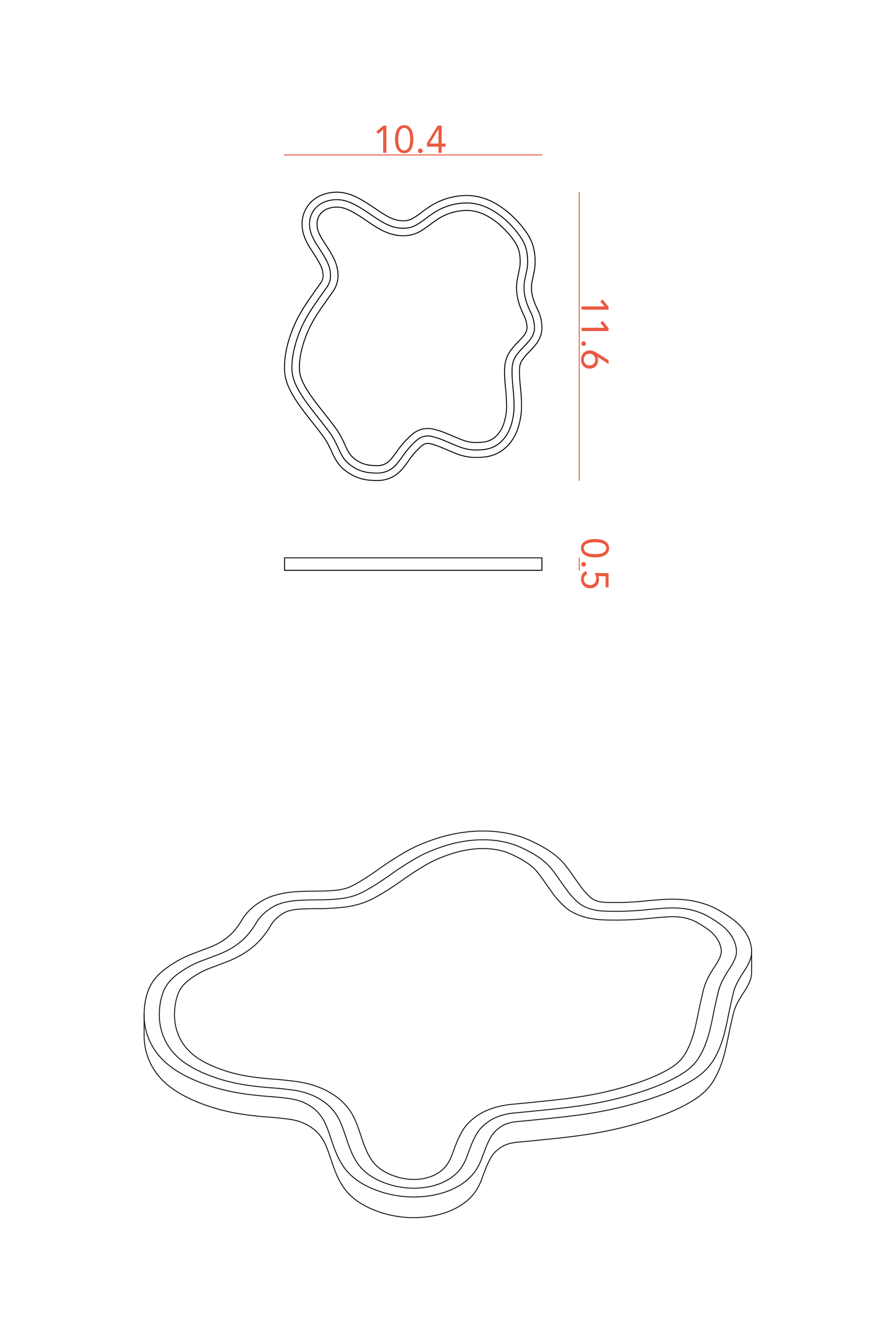 - L 11.6 cm, W 10.4 cm, H 0.5 cm