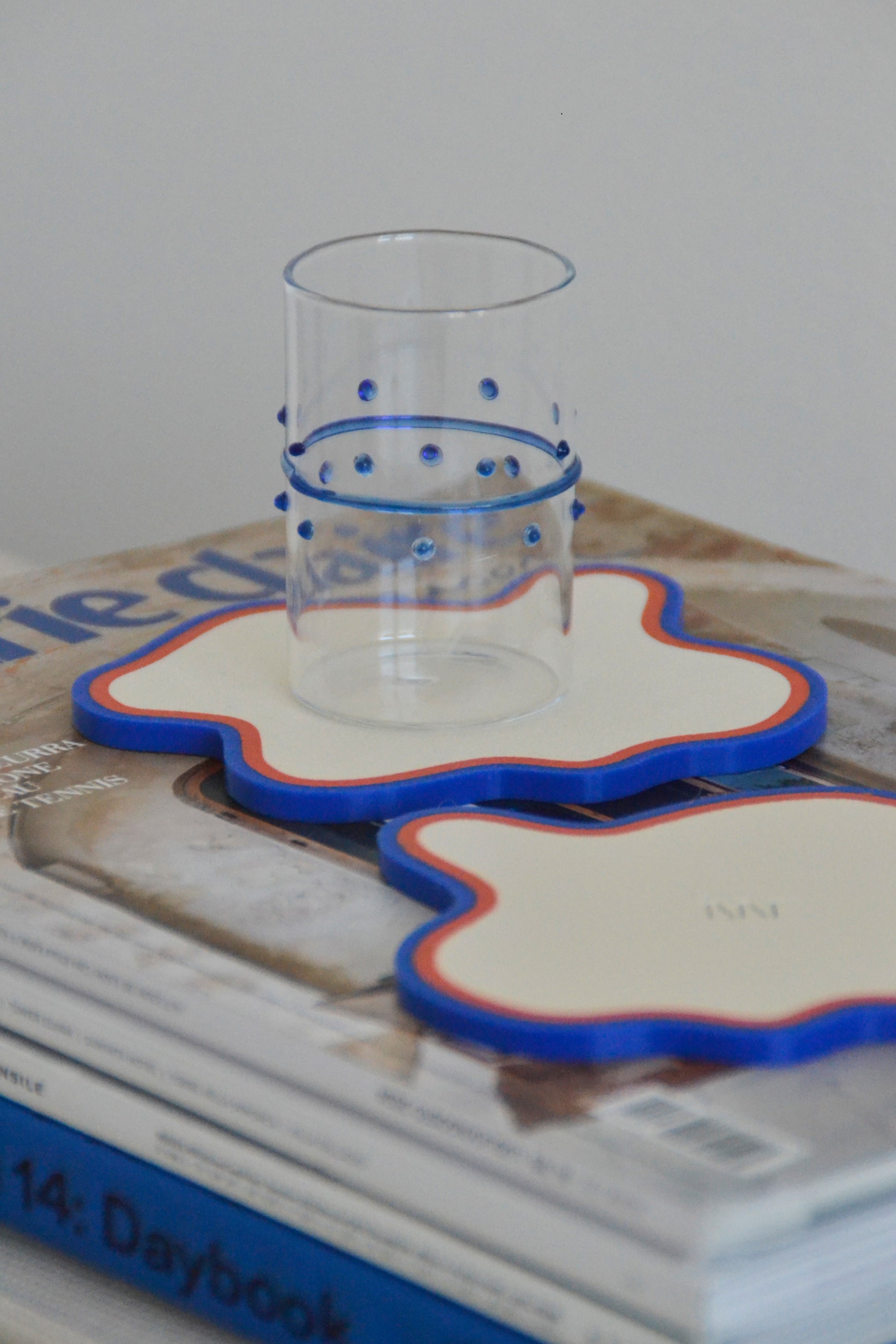 The LIBERA coaster is the perfect example of how organic shapes can be reinterpreted into a unique piece of décor. Its soft, flowing lines of its profile echo the spontaneity of nature, while the bold colour combination – featuring vibrant edges overlaying neutral tones – gives the piece a playful, contemporary presence.