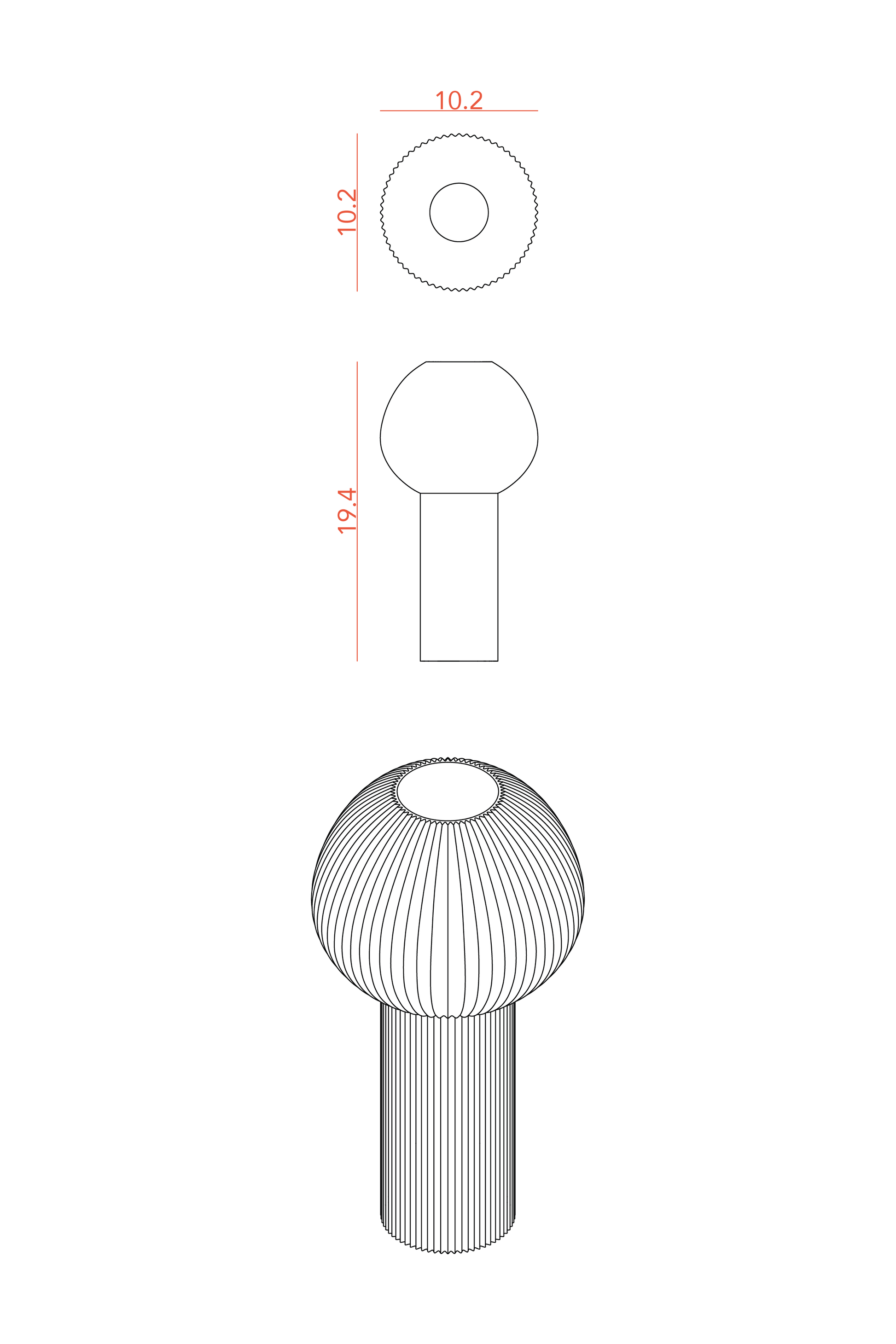- Ø 10.2 cm, H 19.4 cm